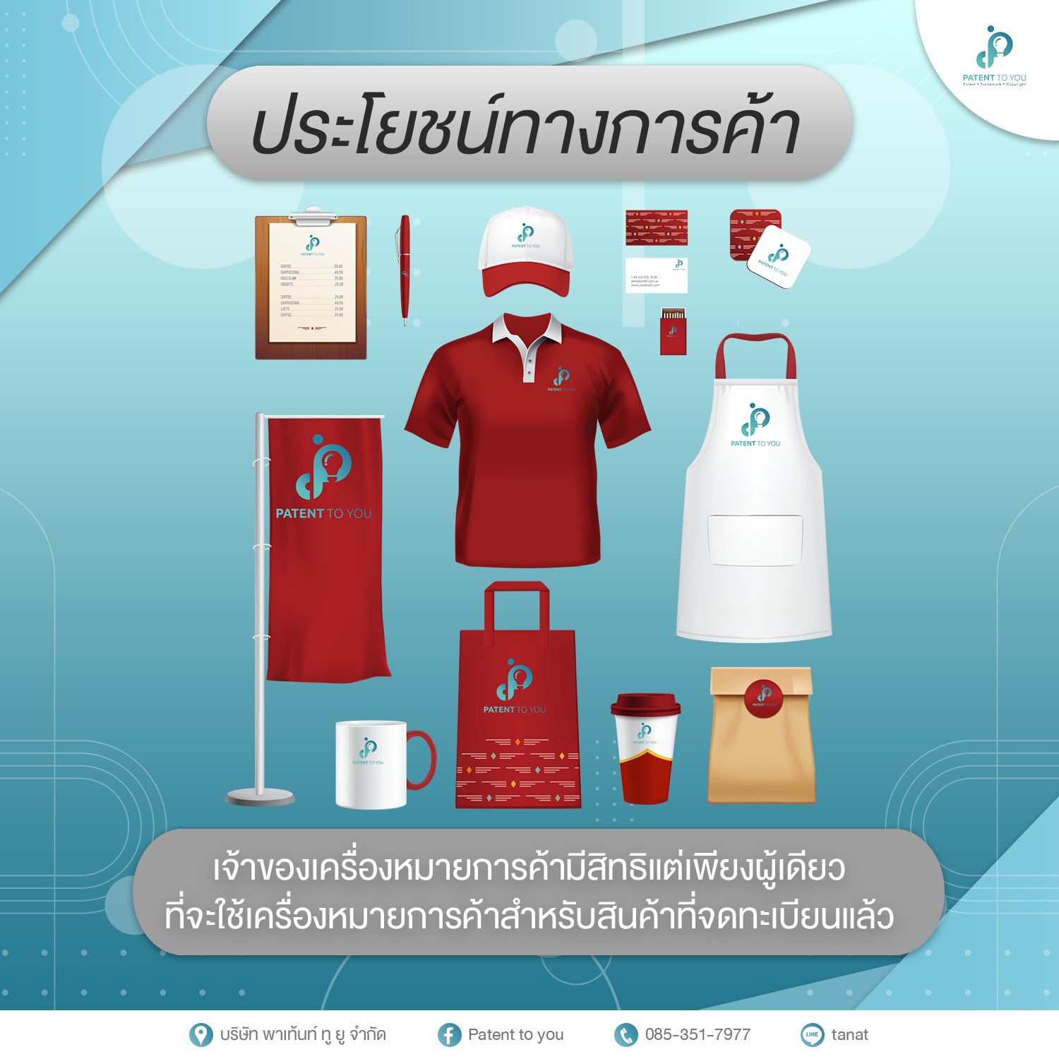 เครื่องหมายการค้าคือสัญลักษณ์ที่ใช้ในการแสดงความเป็นเอกลักษณ์ของสินค้าหรือบริการของผู้ประกอบการ เมื่อคุณได้จดทะเบียนเครื่องหมายการค้าแล้ว มันจะช่วยให้ลูกค้ารู้จักและแยกแยะสินค้าของคุณจากคู่แข่งในตลาด เครื่องหมายการค้าสามารถเป็นได้ทั้งโลโก้ ชื่อสินค้า หรือสัญลักษณ์ต่าง ๆ ที่มีความหมายเฉพาะ