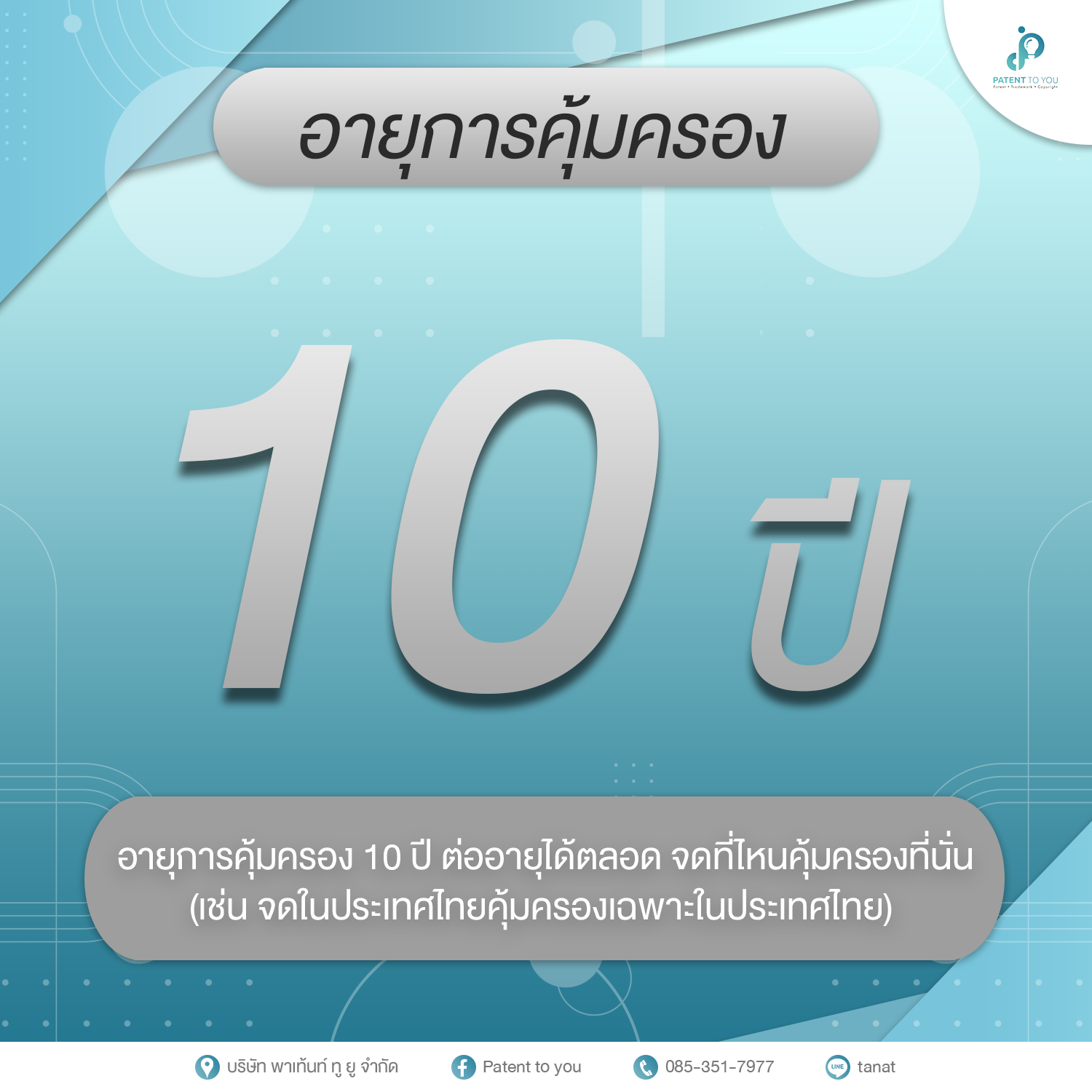 เครื่องหมายการค้าจะได้รับการคุ้มครองในระยะเวลา 10 ปีจากวันที่จดทะเบียน และสามารถขอต่ออายุการคุ้มครองได้เป็นระยะเวลา 10 ปีต่อไปเรื่อย ๆ ซึ่งหมายความว่าคุณสามารถใช้เครื่องหมายการค้าของคุณในการทำธุรกิจได้อย่างมั่นใจตลอดระยะเวลาอันยาวนาน